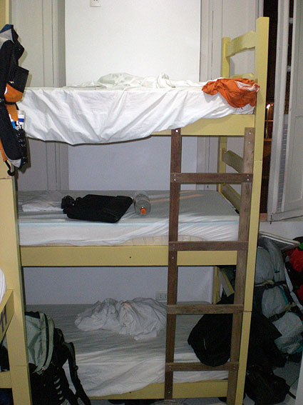Also die Nacht war besser als ich dachte. Zwar ein bisschen frisch und also die restliche Belegung auftauchte ein bisschen laut aber sonst alles OK. Wie auf de Bilder zu erkennen sind es 3erstockbetten. Der Westpole ganz unten dann ich und dann ein Typ der sich gleich ein Mädel abgeschleppt hatte. Sie quatschten ziemlich viel und laut. Der Westpole hat dann was in seiner deutschen Schroffheit gesagt und schupps sind die abgezogen .Die Duschen waren zwar eng und kalt aber sauber. Es war schon wieder ganz schön warm und daher nicht ganz so schlimm etwas kälter zu duschen. Nach dem Frühstück sind wir dann los ins Maracana. Erst ein Stück mit der U Bahn und dann mit so einer Art Regiozug.