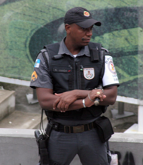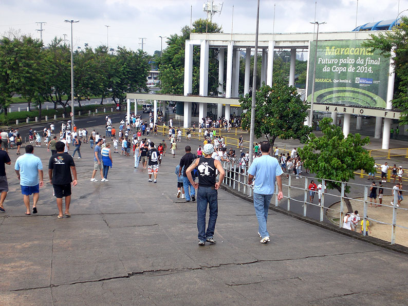 Heute stand das 2 größte Derby in Rio de Janeiro auf dem Plan. Wir sind extra früh zum Stadion um uns noch das Vorspiel der U23 Teams anzugucken. Auf dem Weg ins Stadion ist an einer U Bahn Haltestelle eine Mannschaft Baseballer ausgestiegen. Sah schon etwas seltsam aus wie die so mit ihren Schlägern über den Bahnhof gelaufen sind. Wir sind trotz schon gekaufter Eintrittskarte für 30 Real also 10 Euro sind wir zum Presseeingang um mal abzuchecken ob ich nicht etwas mehr Freiheit zum Fotos machen bekommen könnte. Als wir uns Vorstellten waren die Damen und Herren sehr hilfsbereit. Einer führte uns ins Stadion und zeigte uns alles. Das Vorspiel lief und langsam füllte sich das Stadion. Ende der zweiten Halbzeit wurde die Teams schon von mehr als 50.000 Leuten angefeuert. Das muss man sich mal vorstellen fünfzigtausend brüllen ihre U23 nach vorne. Die Blockfahnen wurden schon mal Probelweise präsentiert. Und es wurde sich eingeschwenkt. Das Vorspiel endete 1:1 und langsam aber sicher fing das Stadion an zu brodeln.