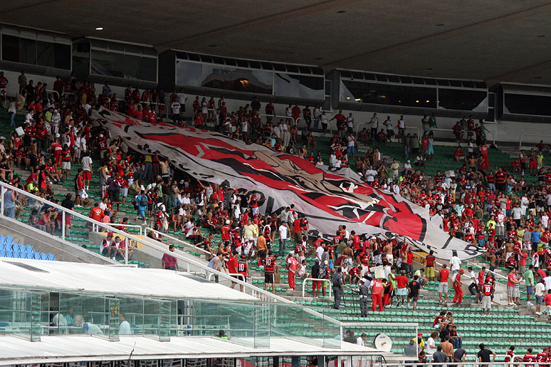 - Es wurden während der Spiels von Vasco ein großes Trikot gezeigt und von Flamengo zweit Blockfahren.