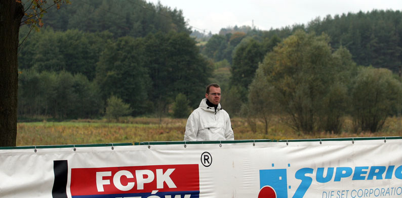 Tribüne auf, welchen ca. 300 Leuten Platz bot. Der überdachte Teil war nicht bestuhlt und man kann sich als Gast aussuchen sitzen und naß werden oder stehen und trocken sein. Das schärfste war, dass wie auf dem ersten Bild zu sehen ist der Platz kurz vor dem Spiel mit einer Walze die an einem Geländewagen hing gewalzt wurde. Sieht man auch nicht alle Tage.