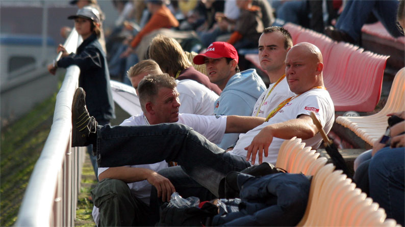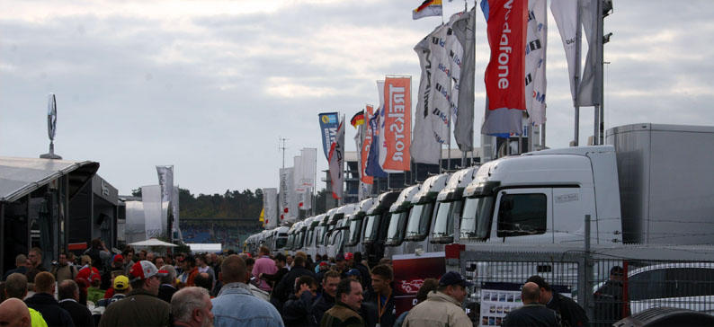 Sogleich hat man auch mit der Beflaggung der Zäune begonnen. Wenn man sich so die Fans bei der DTM