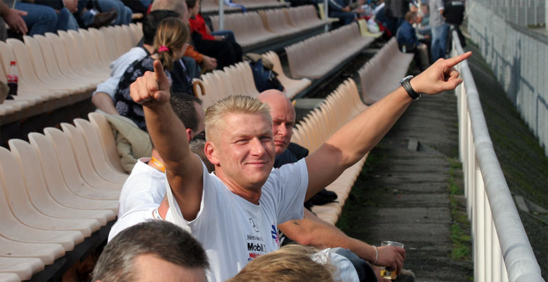 Fanaktionen angeht.Da werden ein paar Fanpappnasen von dem Rennsteckensprecher