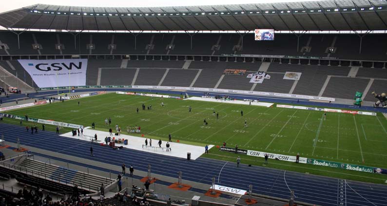 Olympiastadion getroffen. Es stand das erste Mal ein Spiel von Berlin Thunder auf dem Programm.